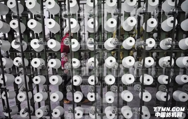 其實,這是發生在山東如意集團寧夏新工廠中的一幕,紡織工人正在紡紗車間紡紗。