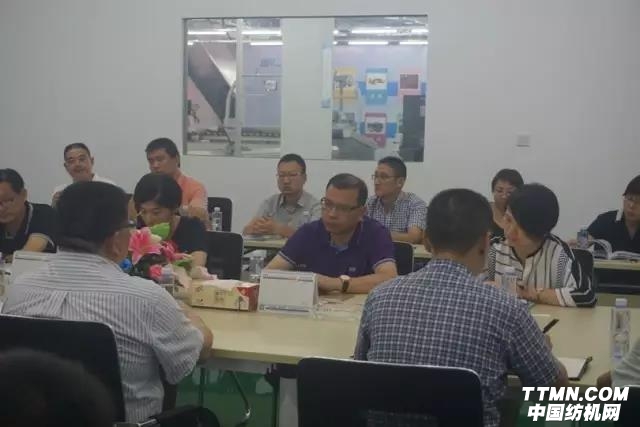 在參觀完展廳后,尹智勇董事長招待嘉欣絲綢園各位領導來到會議室展開座談,雙方就和鷹智能工廠戰略布局展開討論。長園和鷹早在2016年就在山東、安徽、上海三地展開智能工廠戰略布局,與當地服裝企業合作推出服裝工業4.0智能工廠,從面輔料進廠、服裝生產、成品分揀運輸至客戶或門店的全過程實現不落地。