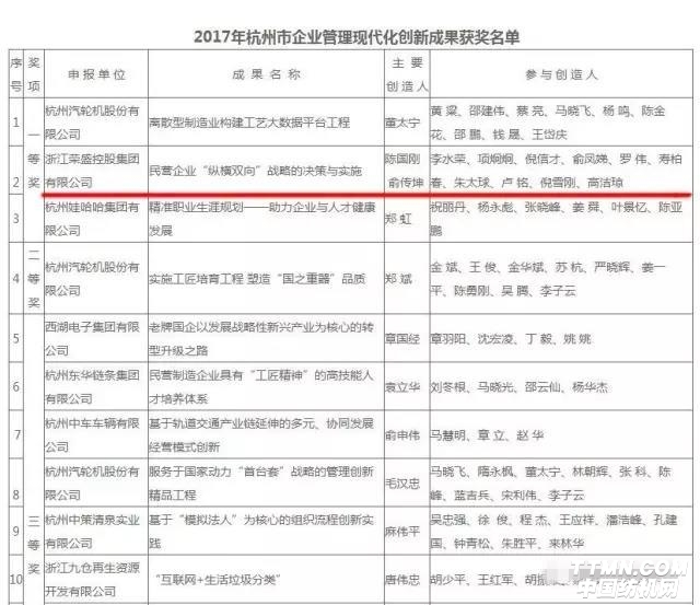 據(jù)悉,在杭州市企業(yè)聯(lián)合會(huì)的組織下,此次評(píng)選共收到企業(yè)創(chuàng)新成果21項(xiàng),經(jīng)杭州市企業(yè)管理現(xiàn)代化創(chuàng)新成果專家評(píng)審小組評(píng)審,最終共有17項(xiàng)管理成果獲獎(jiǎng),包括3項(xiàng)一等獎(jiǎng)、5項(xiàng)二等獎(jiǎng)及9項(xiàng)三等獎(jiǎng)。