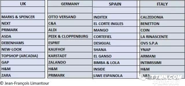 全球30多家國際零售商中有11家來自歐洲。