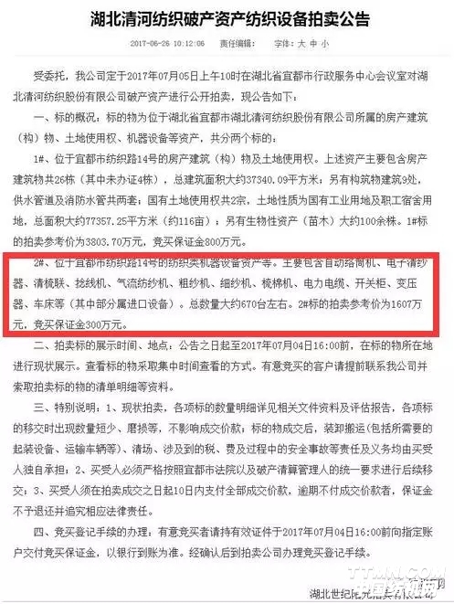 2.湖北清河紡織破產(chǎn)資產(chǎn)紡織設(shè)備拍賣