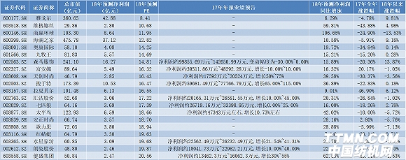 從已經公布2017年業績預告的33家上市公司情況來看,24家實現同比增長。不僅如此,從目前券商一致性預測的2018年凈利潤同比增速來看,整個服裝家紡板塊的中位數達到22.17%,也進一步證實了行業的景氣程度向好。