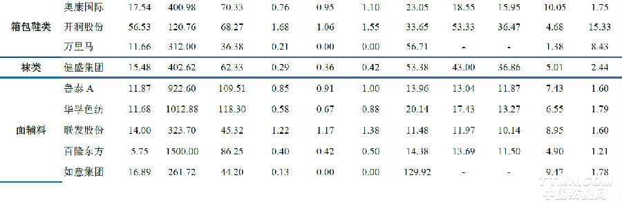 以下是紡織服裝行業重點公司估值表:
