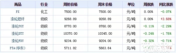 2018年第06周(2.5-2.9)PTA產業價格漲跌榜
