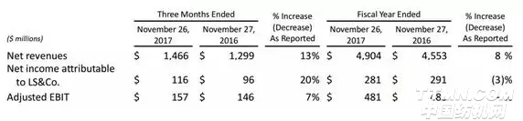 圖為Levi's母公司第四季度和2017財年主要業績數據