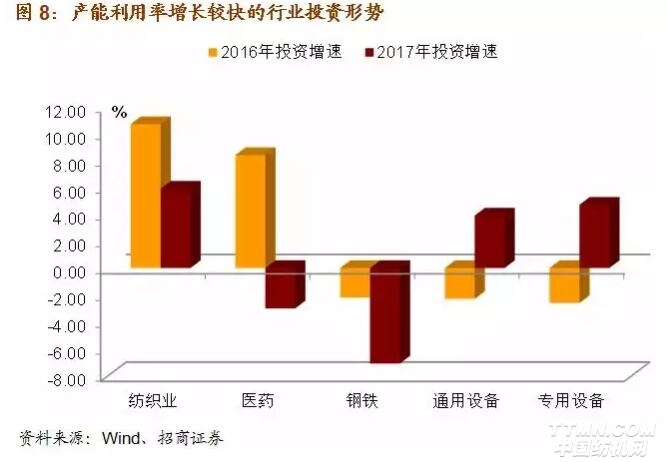 上述三個行業,產能利用率提升速度快于行業平均水平,而行業投資增速下滑意味著新增產能的速度也在下降,供給能力的下降將可能導致行業產品價格的上漲。并且,紡織業和醫藥制造業都屬于下游行業,與當前快速發展的居民消費升級有較強的關聯度,需求有保障使得我們更看好其漲價的可能性。