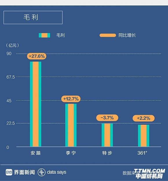 安踏的凈利潤為30.9億元,361°則達到4.57億元,兩者獲得不同程度的增長。