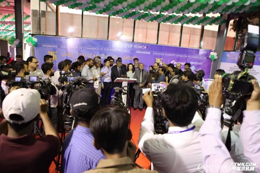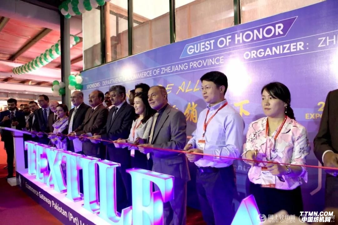 為進一步促進新絲路戰略的實施,探索中國和巴基斯坦紡織服裝行業合作共贏之路,全球紡織網、網上輕紡城組織紹興全萊針紡、紹興花兒紡織、紹興久岸紡織等眾多會員企業抱團赴卡拉奇參展巴基斯坦最大面料展。巴基斯坦商務部秘書長MohammadYounusDagha、巴基斯坦商務廳廳長、巴基斯坦成衣協會會長、浙江省商務廳對外貿易發展處副處長李楊和全球紡織網、網上輕紡城CEO韓沖等領導嘉賓出席了開幕式并剪彩。