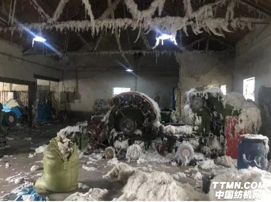 記者跟隨暗訪人員來(lái)到暗眾浜,在道路邊發(fā)現(xiàn)了一家正在作業(yè)的碎絲作坊。走進(jìn)作坊,便能看見(jiàn)大量廢絲堆放在車間內(nèi)和空地上,車間的地面上累積了大量絲絮,房梁上還堆積了大量加工時(shí)漂浮的絲絮。此外,空氣中也漂浮著細(xì)小的絲絮,呼吸時(shí)要十分注意,防止吸入。在車間內(nèi),加工設(shè)備哄哄作響,不斷將廢絲粉碎成小絲絮。據(jù)作坊主人介紹,他們將廢絲粉碎后制作成地毯的原材料。