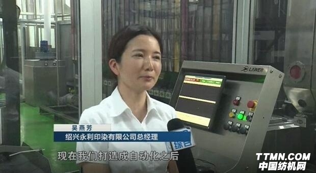 紹興永利印染有限公司總經理吳燕芳說:“以前這里是印染廠最臟最臭的地方,現在我們打造成自動化以后。一個人就可以了,而且環保要求也達到了。”