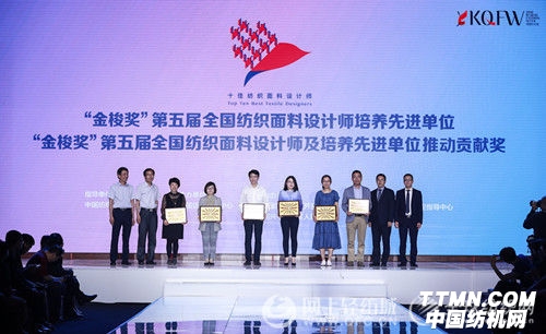 5月6日, “金梭獎·第五屆全國十佳紡織面料設計師及培養先進單位”(簡稱“金梭獎”)頒獎典禮于浙江紹興柯橋在2018柯橋時尚周(春季)上舉行。本屆“金梭獎”評選活動由中國紡織工業聯合會指導,中國紡織信息中心主辦,國家紡織產品開發中心、紹興市柯橋區人民政府協辦,紡織行業職業技能鑒定指導中心支持。