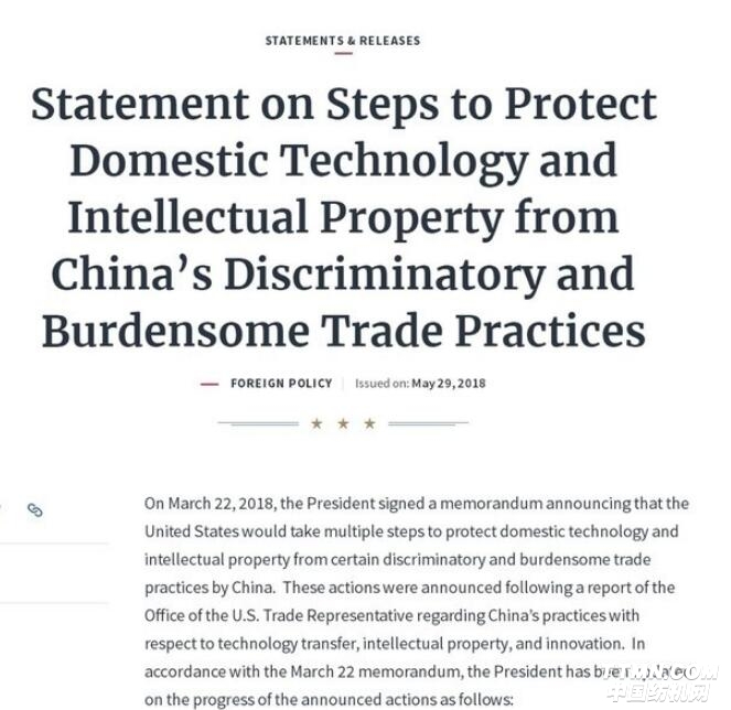 美國白宮官網29日發表聲明,美國將加強對獲取美國工業重大技術的相關中國個人和實體實施出口管制,并采取具體投資限制,擬于2018年6月30日前正式公布相關措施,之后不久將正式實施。