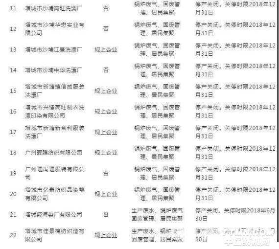 根據(jù)重污染行業(yè)整治提升關(guān)停時(shí)間表來(lái)看,增城區(qū)有22家紡織、印染廠面臨停產(chǎn)整治,最早實(shí)行停產(chǎn)關(guān)閉的廠家將于6月30日關(guān)停,其他大多數(shù)廠家將于年底關(guān)停。