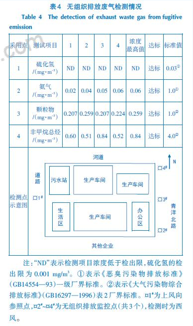 通過對周邊無組織排放廢氣檢測證明,企業對周邊環境大氣影響不大,在允許范圍內,具體檢測情況見表4。