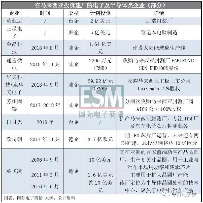馬來西亞是東南亞的后端半導(dǎo)體制造中心,英特爾、英飛凌、日月光、ST等知名半導(dǎo)體公司均在該國建廠。中國半導(dǎo)體公司選擇在馬來西亞落腳,必然看重該國良好的市場環(huán)境。