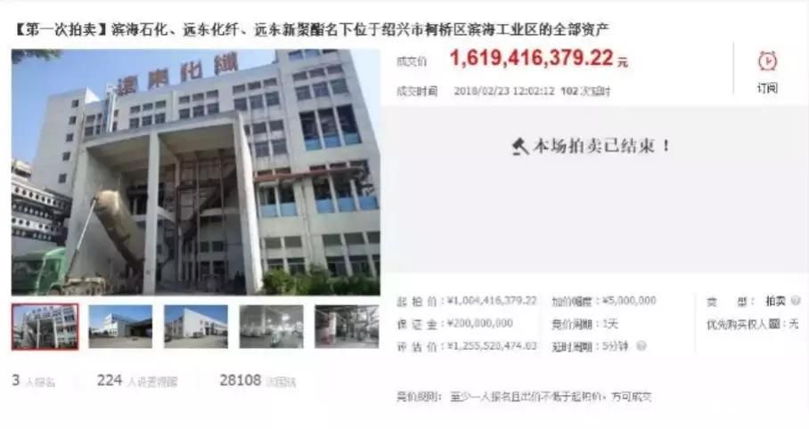 2015年7月遠東化纖申請破產清算,而后將其整體資產,包括房屋建筑物、構筑物及其他輔助設施、機器設備、電子設備,生物性資產,無形資產等進行司法拍賣,起拍價超過10億元,最終成交高達16億元。