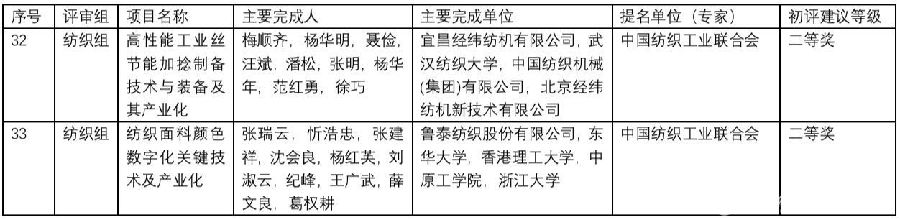 以下為公告原文及2個(gè)紡織獎(jiǎng)項(xiàng)列表。