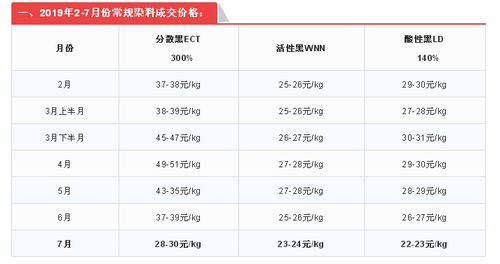 一、2019年2-7月份常規(guī)染料成交價格: