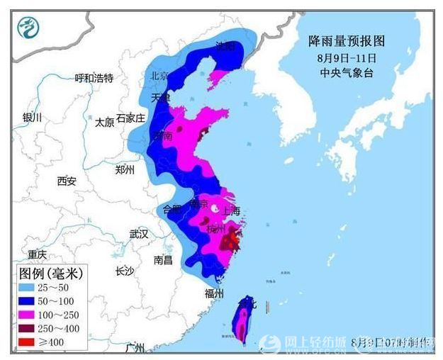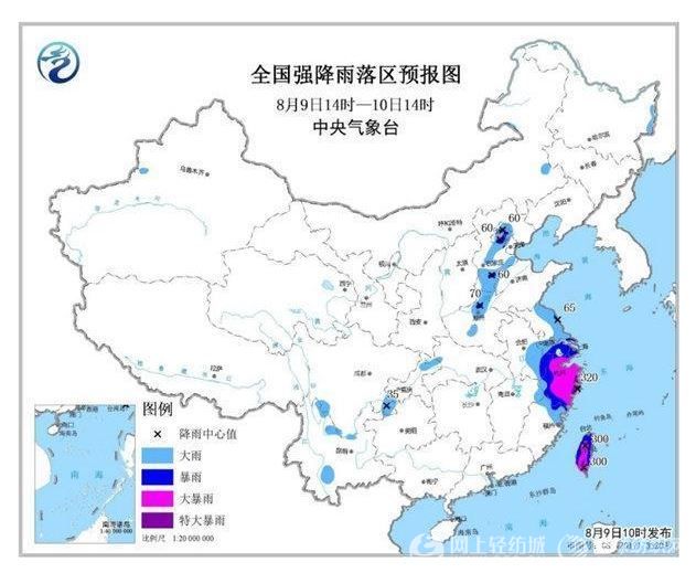 中央氣象臺今早10點升級發布暴雨橙色預警 暴雨席卷10余省:預計,8月9日14時至10日14時,浙江、福建北部、江蘇東部和南部、上海、安徽東南部、臺灣島以及北京、河北中南部、河南中部、重慶西南部和北部、四川南部、云南中北部、黑龍江東部等地的部分地區有大到暴雨,其中浙江中東部、上海南部以及臺灣島等地有大暴雨,浙江東部和臺灣島中部局地有特大暴雨(250~320毫米)。上述部分地區伴有短時強降水(最大小時降雨量20~50毫米,局地可達70毫米以上),局地有雷暴大風等強對流天氣。