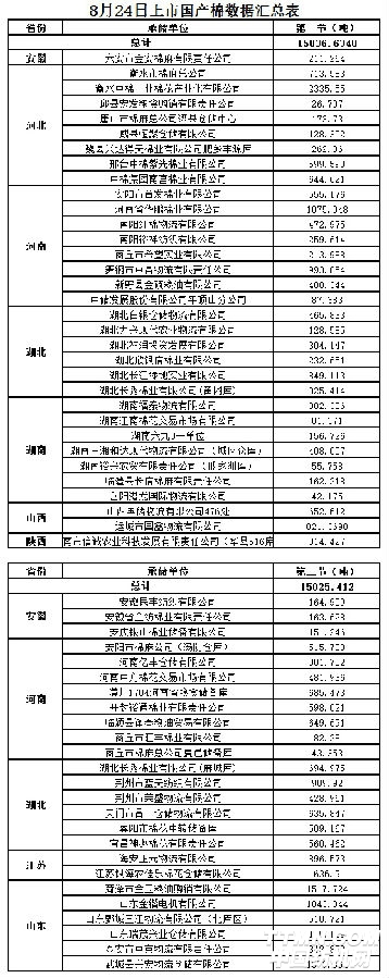8月24日第二節交易國產棉明細數據