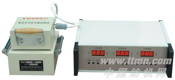 YG605N熨燙升華色牢度儀 儀器特征: 采用微電腦溫度、時間控制系統,全數字溫度、時間設定和顯示,固態繼電器控制加熱器,開、關無噪音,使用壽命長。上、下加熱塊采用鋁合金經磨削、噴砂氧化處理,確保加熱塊與試樣良好的偶合性,加熱塊四周絕熱體采用聚四氟乙稀壓鑄成型,具有良好的絕熱性,并確保溫度的均勻性。 用于尺寸和形狀穩定的各類紡織品的顏色耐干熱的能力及紡織材料、紡織品的顏色耐熱壓、耐熱滾筒加工的能力和織物氯損強力的試驗。 適用標準:GB/T5718;GB/T6152;FZ/T01077;ISO105-P01;ISO105-X11;BS1006;AATCC92,AATCC117、133;DIN54022/54060;JIS L0854;M&S P10等。 主要技術指標  試驗方法:升華—雙面加熱即上、下加熱塊加熱 熨燙—單面加熱即上加熱塊加熱  加熱塊尺寸:50mm×110mm  試樣尺寸:40mm×100mm  試驗壓力:4KPa±1 KPa  測試時間范圍:1~999S,LED顯示  預熱時間:≤30min(110℃)  加熱溫度范圍:室溫~250℃,LED顯示  加熱塊表面溫度誤差:±2℃  加熱功率:180W+180W  電源電壓:AC220V±10%  外形尺寸:主 機190×270×150 mm 控制箱340×300×120mm  重量:主機約7kg;控制箱約5kg