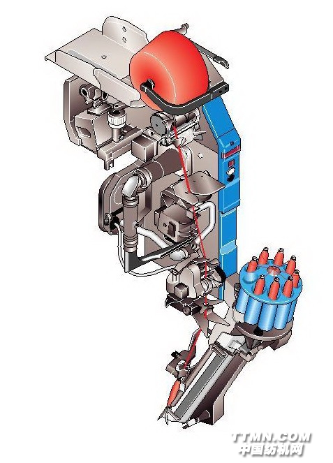 特點(diǎn)之一就是節(jié)能。采用了槽筒直接驅(qū)動的方式,每個單錠操作的全部有關(guān)部件都是獨(dú)立控制的,在每個單錠的操作循環(huán)中只有真正需要動作的零部件才運(yùn)動,避免了重復(fù)動作和無功運(yùn)動,減少了槽筒反轉(zhuǎn)也杜絕了辮子紗和雙紗等。