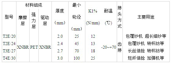 TE系列高強度聚酯龍帶已廣泛用于包覆紡紗機、倍捻機、超長細紗機、轉杯紡紗機、高速彈力絲機等設備的高速龍帶和動力傳動帶。對提高新型高速紡機的使用性能,改善和提高成紗質量起到了重要作用,尤其是滿足了紡織行業的節能要求。