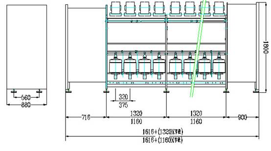 2、該機配置的成形箱體集導絲成型、捻度變換、絡紗角搭配、S、Z轉換與一體,適應最多來回導絲每分鐘65次,最高卷取線速度120m/min。并同時配備周