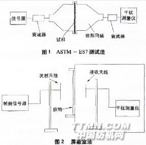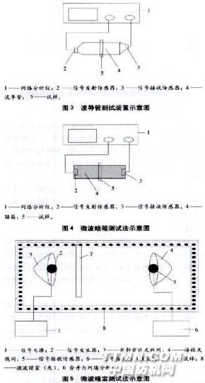 (圖1)、屏蔽室法(圖2)、波導管測試法(圖3)、微波暗箱測試法(圖4)、微波暗室測試法(圖5)等。