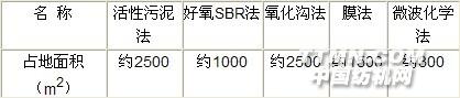 2.占地面積小:日處理量為2000t的工程,總占地面積不到400m2,約為普通活性污泥法處理工藝的1/6—1/10(傳統方法總占地面積大于2000m2)。以日處理2000噸生活污水的工程為例,占地面積如下表:表2:污水處理工程占地的比較