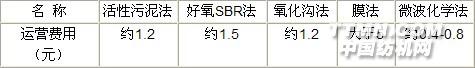 3.運行費用低:用微波能水處理技術處理流程簡單,運行費用低。以日處理2000噸生活污水的工程為例,運行費用如下表:表3:污水處理運行費用的比較