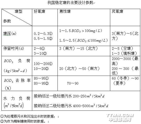 (4)水力條件水力條件主要指廢水在塘內(nèi)的流動特征,如塘內(nèi)存在溝流、短流和返混,將使廢水在塘內(nèi)混合傳質(zhì)過程受到影響,有機物的去除率將下降。我國目前推薦的水力條件是: 1)塘的個數(shù)不少于3個,串聯(lián)運行; 2)塘形如為矩形,長寬比應(yīng)大于3,每個塘的面積以5000 為度; 3)進(jìn)口距塘底0.5m,以多點進(jìn)水為佳,出口應(yīng)盡可能遠(yuǎn)離進(jìn)口; 4)盡量設(shè)置導(dǎo)流墻,橫向?qū)Я鏖L度為塘寬的0.8倍,縱向?qū)Я鲏﹂L度為塘長的0.7倍; 5)沿塘長每隔一定距離設(shè)置一條橫向污泥溝,溝上方設(shè)障板,障板伸入水中約0.9m,水面以上部分不大于0.15米; 6)塘堤的最大和最小坡度分別為3:1和6:1。
