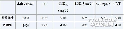 2、 常熟鴿球印染有限公司8000t/d印染廢水處理工程 常熟鴿球印染有限公司由六家印染企業(yè)組合而成,原位于常熟市區(qū)。隨城市規(guī)劃和生產(chǎn)發(fā)展需要,該公司整體搬遷至常熟市大義鎮(zhèn)工業(yè)開發(fā)區(qū)。 該公司主要生產(chǎn)純棉和滌棉混紡織物,年產(chǎn)量約9000萬米。生產(chǎn)過程中主要用分散染料和活性染料及有關(guān)助劑。廢水排放量近6000m3/d。搬遷后廢水處理工程屬于三同時(shí)項(xiàng)目。 受該公司委托,南京嘉慶科技實(shí)業(yè)有限公司為其設(shè)計(jì)污水處理方案。經(jīng)本工程處理后的水質(zhì)達(dá)到[GB4287—92]《紡織染整工業(yè)水污染物排放標(biāo)準(zhǔn)》的一級(jí)標(biāo)準(zhǔn),其中50%(3000m3/d)排放,另有50%(3000m3/d)回用于生產(chǎn)工藝、冷卻水補(bǔ)充水及綠化等。 (1) 設(shè)計(jì)規(guī)模 廢水正常排放量接近6000m3/d,考慮生產(chǎn)高峰期排水量,業(yè)主提出該廢水系統(tǒng)的最大處理能力為8000m3/d。 (2) 設(shè)計(jì)進(jìn)水水質(zhì) 根據(jù)常熟鴿球印染有限公司提供的有關(guān)水質(zhì)數(shù)據(jù)見表3。 表3 設(shè)計(jì)進(jìn)水水質(zhì)