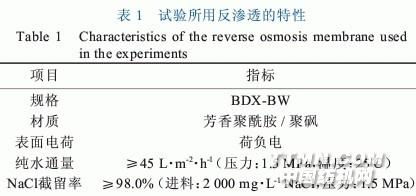 1.試驗部分 1.1反滲透膜 本試驗采用的反滲透膜是由杭州北斗星膜制品有限公司提供的聚酰胺復合膜,具