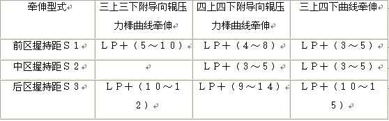 表5-4-4 不同牽伸型式各區握持距P值范圍