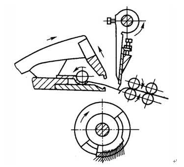 1. 、機構組成(1)喂入機構——承卷羅拉、給棉羅拉、導卷板