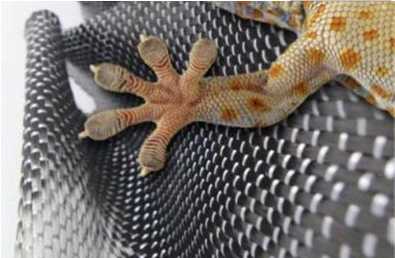 壁虎皮膚膠是受益于壁虎足部特征而設計的一種紡織基膠,壁虎利用皮膚-腱-骨骼連接方式,使其具有超級粘附能力,可以粘在任何物體表面。最新研制的壁虎皮膚膠具備以上功能性,它是由尼龍和聚氨酯等商業材料構成,但不同于一次性粘合劑,壁虎皮膚膠可以重復使用,并且不殘留任何粘性殘余物。