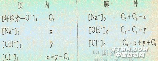[可移動離子]I=2X-C1; [可移動離子]O=2(C2+C3-X)根據(jù)唐能膜平衡原理,平衡時可移動的任何一價陽離子膜內(nèi)外濃度的比值都應(yīng)相等,而且反比于陰離子濃度即