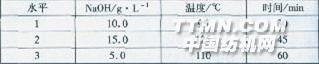 1 試驗1.1試驗材料和設備 超細纖維Superpol經編毛圈針織物(350 g/m2),滌錦(77/23)復合剝離型超細纖維(DTY長絲,36.7 tex/144 fX9p);氫氧化鈉(AR);XS-212-103型顯微鏡,HS-12型高溫小樣機,YG701H型織物縮水率實驗機,EL-400型立體氣動式小軋車,BS 110S型電子分析天平,LFY-215型織物毛細效應儀,LFY-201D多功能織物強力機等。1.2試驗方法1.2.1試驗設計 為研究開纖工藝中氫氧化鈉濃度、溫度、時間三因素對開纖效果的影響,設計了燒堿、溫度、時間三因素三水平的L9(33)正交試驗。表1正交試驗因素水平表