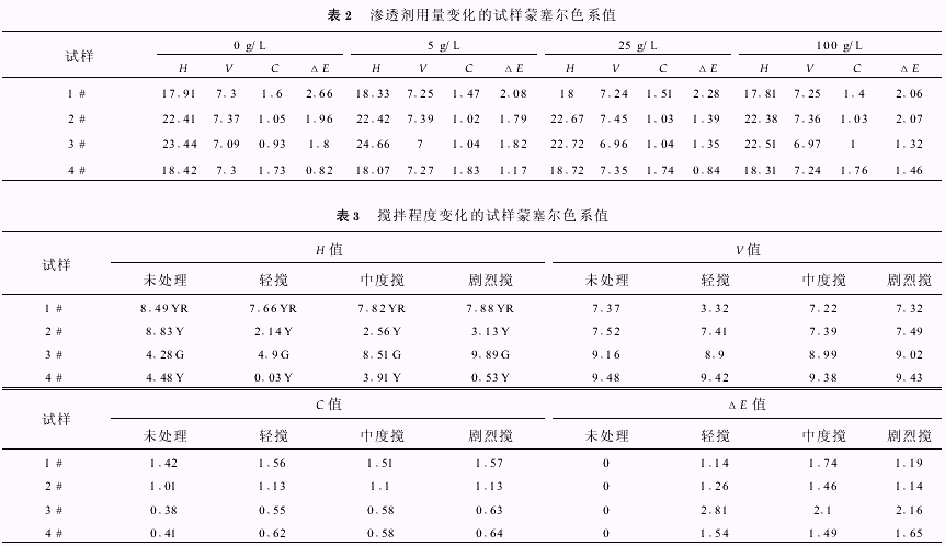 天然彩色棉機織物果膠酶處理的色變規律李茂松 周文龍 唐志榮(浙江理工大學材料與紡織學院,杭州,310033)摘要:用果膠酶對天然彩色棉機織物(棕、綠)進行處理,分析不同條件下的色變規律。實觀發現:果膠酶處理后棕色棉的黃紅色調在蒙塞爾色系向逆時針變化,而綠色棉的黃綠色調向順時針變化;彩色棉的明度隨處理時間的增加而下降,色澤加深;飽和度隨處理時間的增加棕色棉上升,而綠色棉下降;酶用量引起的明度和飽和度變化幅度相對較小;色差ΔE隨時間、酶用量增加而增大;滲透劑濃度和實驗室條件下的攪拌程度對顏色無明顯影響。關鍵詞:彩色棉 機織物 果膠酶 色變中圖分類號:TS1925 文獻標識碼:A 文章編號:02539721(2004)05006103 天然彩色棉織物在遇酸、堿、氧化劑、還原劑、滲透劑、洗滌劑、皂煮、柔軟、免燙抗皺、高溫等處理時存在著變色問題。如何解決或利用產品的色變性能,對彩色棉產品的開發有重要現實意義。已有研究表明,對彩色棉進行生物酶處理也是代替傳統堿處理的一種很好的綠色整理方法。本文就果膠酶處理彩色棉的色變規律進行了研究,現報道如下。1 實驗材料與方法1.1 原材料堿性果膠酶(BioPrepL,3000APSUg)由諾維信公司提供;滲透劑由杭州市余杭艾迪精細化工研究所提供。本實驗采用的試樣組織為21右斜紋機織物,其結構參數列于表1。1.2 織物的處理條件使用恒溫水浴鍋,控制處理液pH值為80~90、溫度為55℃、浴比為1∶20,改變酶濃度、處理時間、攪拌程度和是否添加滲透劑等處理條件,織物處理后用90℃水洗5~10min,然后冷水洗5~10min,晾干待用。1.3 色差測定采用SM4型色差儀進行織物的色澤測定,采用蒙塞爾色系(H代表色調,V代表明度,C代表飽和度,ΔE代表色差),每塊試樣取5個數的平均值。2 結果與討論2.1 處理時間