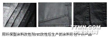 經環保型涂料改性劑PNT改性后,帶了陽電荷的纖維在涂料分散液中進行靜電吸附使涂料附著于纖維表面較傳統粘合劑的深度提高50%以上,其提升率可達100g/l以上(見圖四)涂料的利用率明顯增高,深度明顯提高,手感明顯改善,基本可染深色。