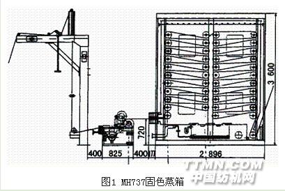 MH737固色蒸箱由一臺高帶液的輕型軋車和一臺特制的汽封蒸箱組成(圖1)。
