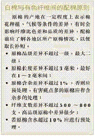 的得色淺,深度差異最高可達(dá)60%。因此,配棉中纖維成熟度是重要指針之一,色纖維批與批間也會(huì)產(chǎn)生比色差,所以在批與批交替時(shí),配棉一定要減少棉纖維色澤變化,從而可以減少成紗色差。 純彩棉紗可用棉包混棉,若加少量白色纖維,一般可采用棉條混棉。
