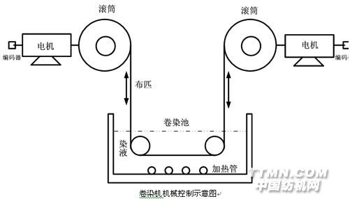 卷染機的控制江蘇省無錫市聯昌染廠SW1500卷染機機械控制示意圖如下: