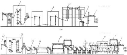 1—進布裝置 2、6—均勻軋車 3—紅外線烘燥機 4—橫導輥熱風烘燥機