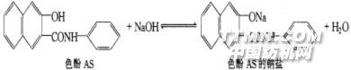 不溶性偶氮染料:含—N=N—基團,不含水溶基團,不溶于水,由染料半體(色酚、色基)在纖維上偶合生成染料。又稱顯色染料、冰染染料。 染料生成: 色酚(偶合劑)+色基(顯色劑)--- 染料色淀 優點:耐洗、耐氯漂牢度高,色艷,成本低。 缺點:只染深色。染料安全性色酚性質:溶于燒堿成鈉鹽,無色。對纖維素纖維具直接性,織物用色酚上染過程稱打底。 色酚AS:
