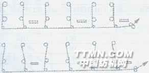 圖1經軸的退繞方式示意2染液補給量的計算及方法 為了在染色過程中不出現織軸前后及織軸間的色差,就必須按照工藝以一定流量往染槽中補充還原母液,以確保紗線色澤均勻一致。紗線帶走的染料量應和補充到染槽中的還原液量相一致。還原母液的補充量可以用下列公式求得: Q(m1/min)=M×Nt×V×η I×(1+G) 式中:Q——還原母液的補給速率(ml/min); M——染色的總經根數(根);Nt——染紗的特數(tex); V——染色速度(m/min); η——上染率(%); G——紗線公定回潮率(%): I——還原母液