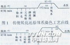 羊毛沸染工藝不僅消耗大量的能源,而且對羊毛纖維的品質造成不良影響,高溫長時間沸煮還會造成羊毛泛黃,影響纖維的可紡性和制成率、手感、鮮艷度及光澤。因此,羊毛低溫染色越來越受到毛紡行業的重視。長期以來,國內外許多染色工作者都在尋求羊毛低溫染色的途徑,歸納起來,主要有甲酸法、尿素法、溶劑法、前處理法及表面活性劑法等。 這些方法在解決羊毛低溫染色問題中雖有一定的成效,但存在成本高、工藝操作困難、污染嚴重等弊端,而未能推廣應用于工業化生產,所以人們期待著一種有效低溫染色方法,既不破壞羊毛纖維的特性,又能保證羊毛織物的手感、光澤等優良的服用性能,以達到低溫染色的目的。1實驗1.1材料與試劑 染色試樣:60支內蒙古羊毛毛條。 染化料:弱酸性黃、硫脲、雙氧水、氯化稀土、元明粉、滲透劑、醋酸(5%)等。1.2設備及儀器 電子天平、721型分光光度計、溫度計、燒杯、容量瓶、移液管、雙列四孔水瓷柑鍋、單纖維強力測試儀等。 1.3實驗方法 傳統氧化還原體系染色工藝曲線見圖1,氯化稀土氧化還原體系染色工藝曲線見圖2。