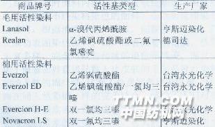 0前言聚丙烯腈纖維是最重要的合成纖維之一,具有手感柔軟、回彈性好、耐日光等優(yōu)良特性,但也存在吸濕性、導(dǎo)電性差等缺點,為了改善這些不足,一個重要的途徑是將丙烯腈基系聚合物與天然聚合物進行共混或?qū)Ρ╇媾c天然聚合物進行接枝共聚。牛奶絲是將牛奶酪素蛋白與丙烯腈接枝共聚而成的一種新型含蛋白質(zhì)化學(xué)纖維,商業(yè)用牛奶絲主要含有酪素蛋白與丙烯腈接枝共聚物、丙烯腈均聚物和未反應(yīng)的酪素蛋白。牛奶絲的拉伸性能和熱性能與聚丙烯腈纖維相似,其親水性介于聚丙烯腈和天然纖維之間,具有良好的吸濕導(dǎo)濕性。上海正家牛奶絲科技有限公司生產(chǎn)的牛奶絲含有約25%的酪素蛋白,因在接枝共聚過程中添加了磺酸基單體,故含有少量磺酸基。根據(jù)其化學(xué)組成,理論上可用酸性、中性、活性、直接和陽離子染料染色。作者已詳細研究過牛奶絲的酸性和中性染料染色性能。本文則討論了毛用和棉用活性染料對牛奶絲的適用性,研究了堿劑用量、染色溫度、不同染色方法等對棉用活性染料染色的影響,并討論了它們的染色速度和提升性能。1試驗材料和方法1.1試驗材料牛奶絲規(guī)格1.5Dx38mm(上海正家牛奶絲科技有限公司)染化料所用毛用和棉用活性染料見表1;勻染劑平平加O(工業(yè)品)、勻染劑Albegal B(亨斯邁染化)、皂洗劑ErioponR(亨斯邁染化);硫酸鈉、碳酸鈉、冰乙酸(分析純)。表1染色試驗所用活性染料.jpg)