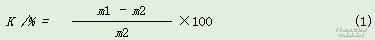 1 試驗1. 1 材料和試劑織物 7cm×25 cm經過煮練、漂白和絲光的棉織物(電暈長度范圍為18cm)。試劑 活性紅K22G,食鹽,無水碳酸鈉(均為分析純),皂片公司) 。1. 2 儀器設備SDCD1622210電暈放電儀(大連無線電九廠),TENSOR27傅里葉紅外光譜儀(德國布魯克光譜儀器公司), YG(B)871型毛細管效應測定儀(溫州大榮紡織機械儀器廠), UV2550型紫外分光光度計(日本島津公司),Y(B)571B型染色牢度摩擦儀(溫州市大榮紡織儀器有限公司), SW212型耐洗色牢度試驗機(無錫紡織儀器廠) , LC189型燈箱(天津華譜合力科技有限公司) ,國家標準比色卡。1. 3 試驗方法1. 3. 1 電暈處理將試樣分為四組,每組10份, 9份分別在8、10、12 kV下電暈處理15、30、45s, 1份為空白對照樣。1. 3. 2 紅外分析采用TENSOR27傅里葉全反射紅外光譜儀,分析試樣中羥基和其它親水性基團的變化情況。1. 3. 3 潤濕性能測試將棉試樣一端放入毛細效應測定儀的水槽中,使用張力夾(3.0±0.5) g夾住布條浸入水中3 mm,張力夾平面與水面平行, 30 min后測量布條吸水高度。1. 3. 4 失重率測試將電暈處理前后的棉試樣迅速稱重,按式(1)計算失